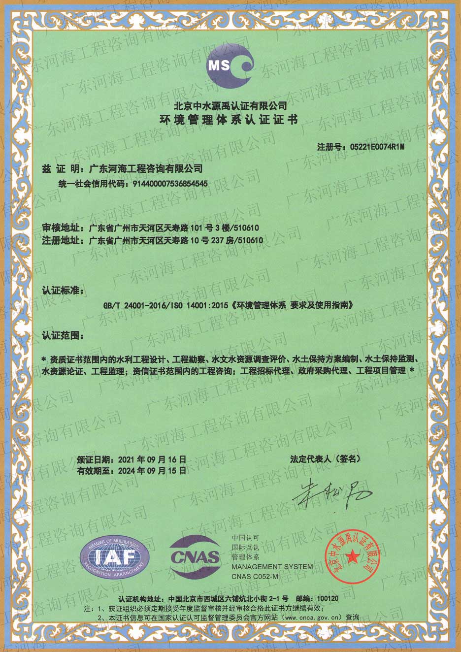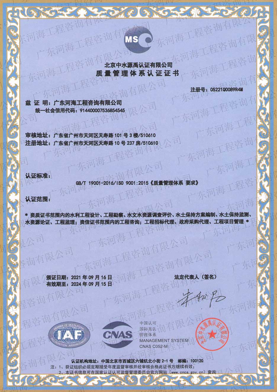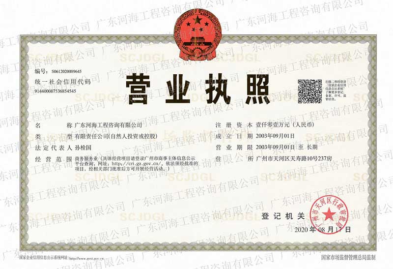 ??????廣東河海工程咨詢有限公司成立于2003年9月。公司具備工程咨詢甲級資信(含水利水電工程、市政公用工程、生態(tài)建設(shè)和環(huán)境工程專業(yè))證書、水利工程設(shè)計(jì)乙級資質(zhì)證書、工程勘察巖士工程勘察專業(yè)乙級資質(zhì)證書、工程測量專業(yè)乙級資質(zhì)證書、水文水資源調(diào)查評價(jià)甲級水平評價(jià)證書、生產(chǎn)建設(shè)項(xiàng)目水土保持方案編制單位水平評價(jià)證書(★★★★)、生產(chǎn)建設(shè)項(xiàng)目水土保持監(jiān)測單位水平評價(jià)證書(★★★★)、水資源論證乙級水平評價(jià)證書、水利工程施工監(jiān)理甲級及水土保持工程施工監(jiān)理甲級資質(zhì)證書、廣東省建設(shè)項(xiàng)目工程環(huán)境監(jiān)理甲級能力評價(jià)證書、市政公用工程和房屋建筑工程及電力工程施工監(jiān)理乙級資質(zhì)證書、地質(zhì)災(zāi)害治理工程監(jiān)理乙級資質(zhì)證書等,具有工程招標(biāo)代理、工程造價(jià)咨詢,政府采購代理機(jī)構(gòu)資格,系水土保持設(shè)施驗(yàn)收技術(shù)評估單位、水利安全生產(chǎn)標(biāo)準(zhǔn)化評審機(jī)構(gòu)、農(nóng)村水電站安全生產(chǎn)標(biāo)準(zhǔn)化評審機(jī)構(gòu),以上資質(zhì)及資格為企業(yè)的業(yè)務(wù)拓展奠定了良好的基礎(chǔ)。